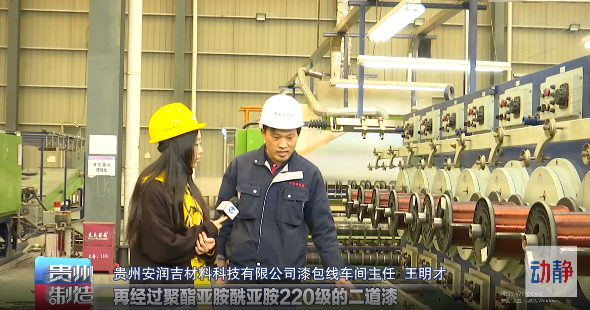 贵州安润吉材料科技有限公司漆包线车间主任王明才说,经过聚酯亚胺1807底漆,再经过聚酯亚胺酰亚胺220级的二道漆,再经过第三道尼龙漆,反复烘干烘烤以后,它能达到电压一万伏,耐压达到8到9千伏,满足客户的化学性能、电性能和热性能的需求。
