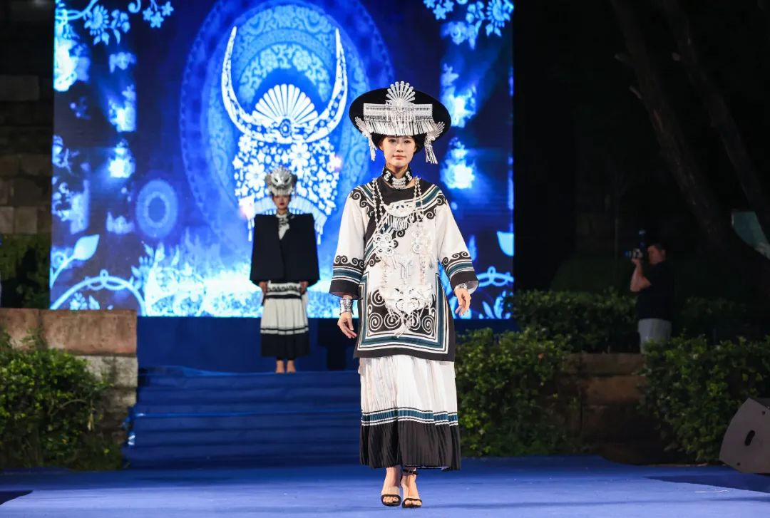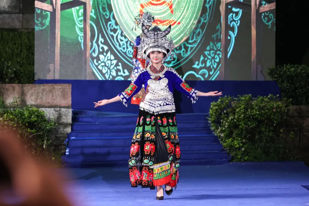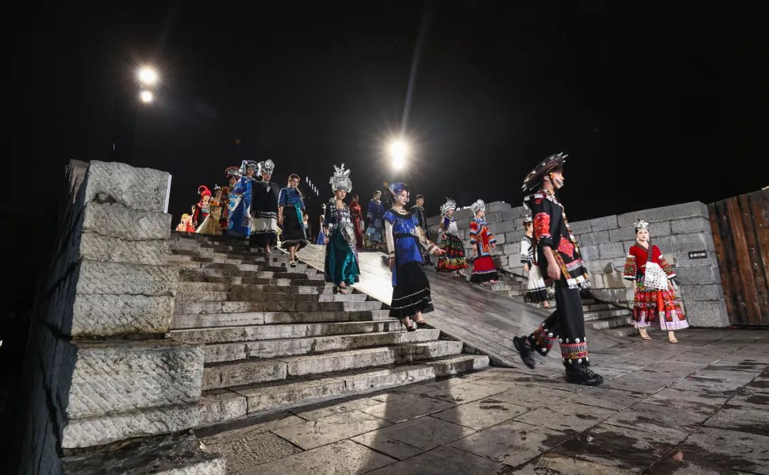“贵州是多民族文化的大省,正好结合‘5.19世界旅游日’,选在文昌阁举办遇见·城墙非遗秀,让城墙与时尚结合,是一种文化的碰撞。今天的大秀以民族集合的形式,融合中国各个民族的不同文化元素和国家级非遗,包括水族的马尾绣、彝族的银饰技艺、苗族堆料、侗族破线绣、苗族百褶裙技艺等非遗元素,用30个模特演绎30套民族服装,展现不同民族与时装的相互融合,让整场走秀既有民族味道,又突出时装和潮流品味。”贵州省三行文化传媒有限公司秀导李敦曼云介绍。