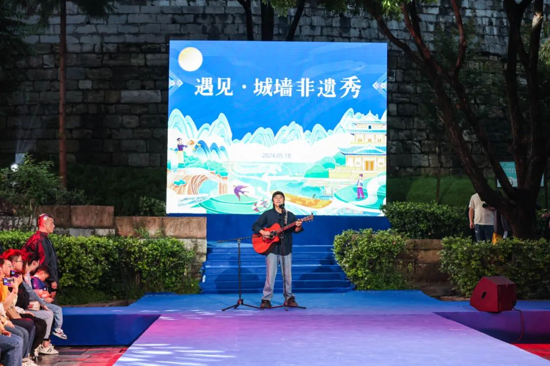 作为云岩区推出的“爽爽贵阳,‘娱’你相约”主题活动系列子活动之一。当晚19:20分,在彝族歌曲《阿杰鲁》、流行音乐《龙卷风》等优美的旋律中,“遇见·城墙非遗秀”正式开场。