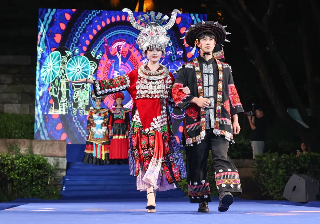 5月18日晚,2024年“5·19中国旅游日”主题周倒计时接力城市活动之遇见·城墙非遗秀在贵阳云岩区文昌阁日晷广场举行。“非遗”与古城墙相遇,璀璨文化与厚重历史相加,传统非遗技艺与现代时尚设计相结合,不仅为观众带来了一场视觉盛宴,更打造了一个文化交流与传承的重要平台。