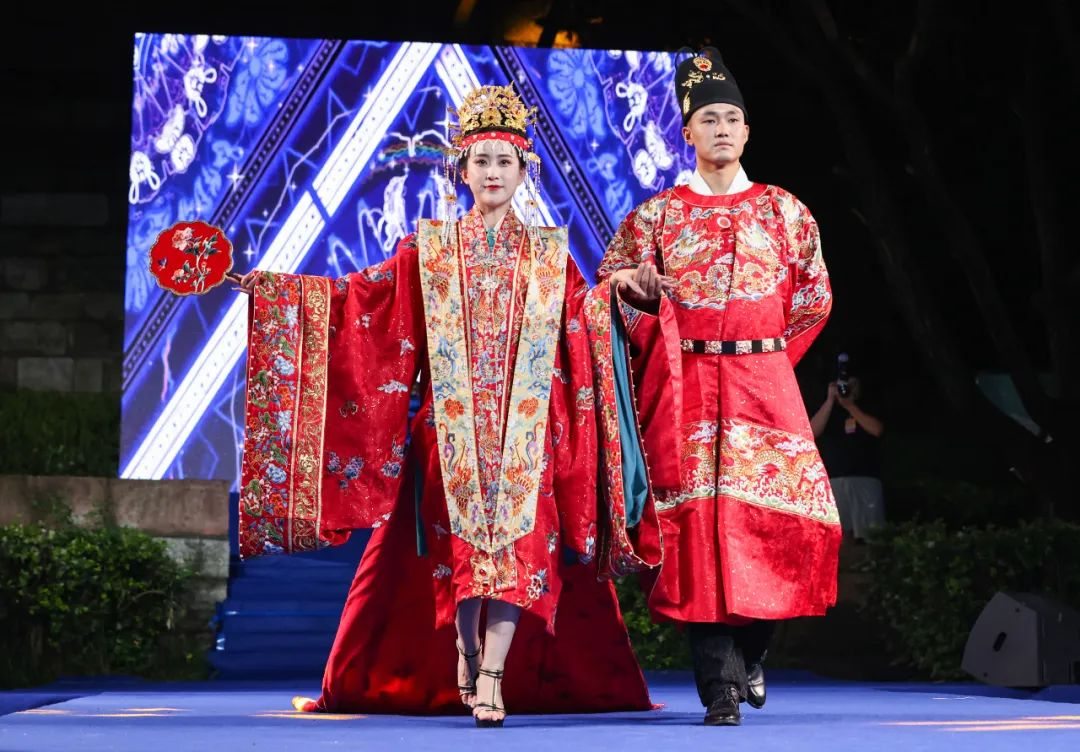 第二篇章,良缘夙缔,庆缘定三生盛宴,通过不同民族、不同朝代婚服展示,展现传统婚服丰富的历史内涵、独特的审美价值和深厚的民俗底蕴,让观众深入了解文化的多样性和独特性,传承和弘扬优秀的婚姻文化。同时,在5.20即将来临之际,在“爽爽贵阳·文昌云岩”这座充满“爱”的城市里向广大的市民、游客朋友致以爱的祝福。