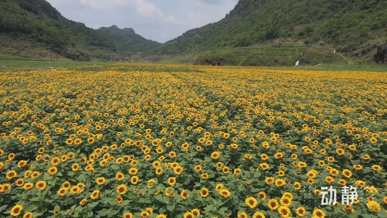 近段时间,在黔西南州兴义市德卧镇白水河村,八光海子坝区金州蔬菜基地的50亩向日葵迎来了最佳观赏期。成片的向日葵花海映入眼帘,一望无际。蓝天白云下,一株株1米多高连片的向日葵舒展绿叶,向阳盛开,绚烂多姿,美不胜收。