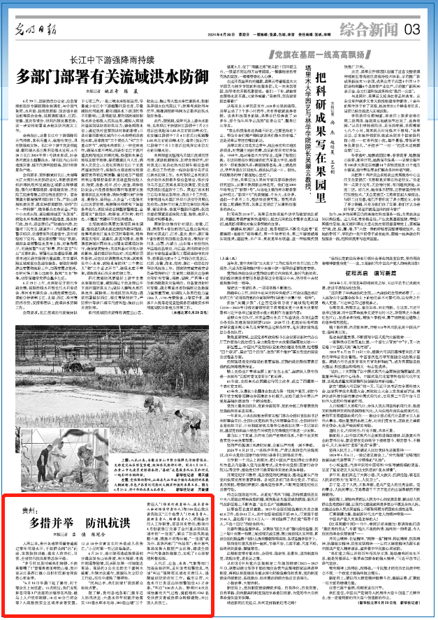 据了解,贵州各地各部门提早进入防汛状态:六盘水市年初就开始落实120座水库水电站、383座山塘“三个责任人”(防汛行政责任人、技术责任人和巡坝值守责任人)和184处山洪灾害危险区“三个负责人”(行政负责人、监测负责人、转移负责人),明确各责任人工作职责,层层压实责任;黔南州4月份就修订完善了全州重点防洪区域布控“一张图”,解决了防洪风险底数不清、措施不明等问题,“一张图”成为州、县防汛部门“作战图”;贵州省气象局发挥大数据产业优势,建成全国产化气象高性能算力,实现了1公里智能网格预报。
