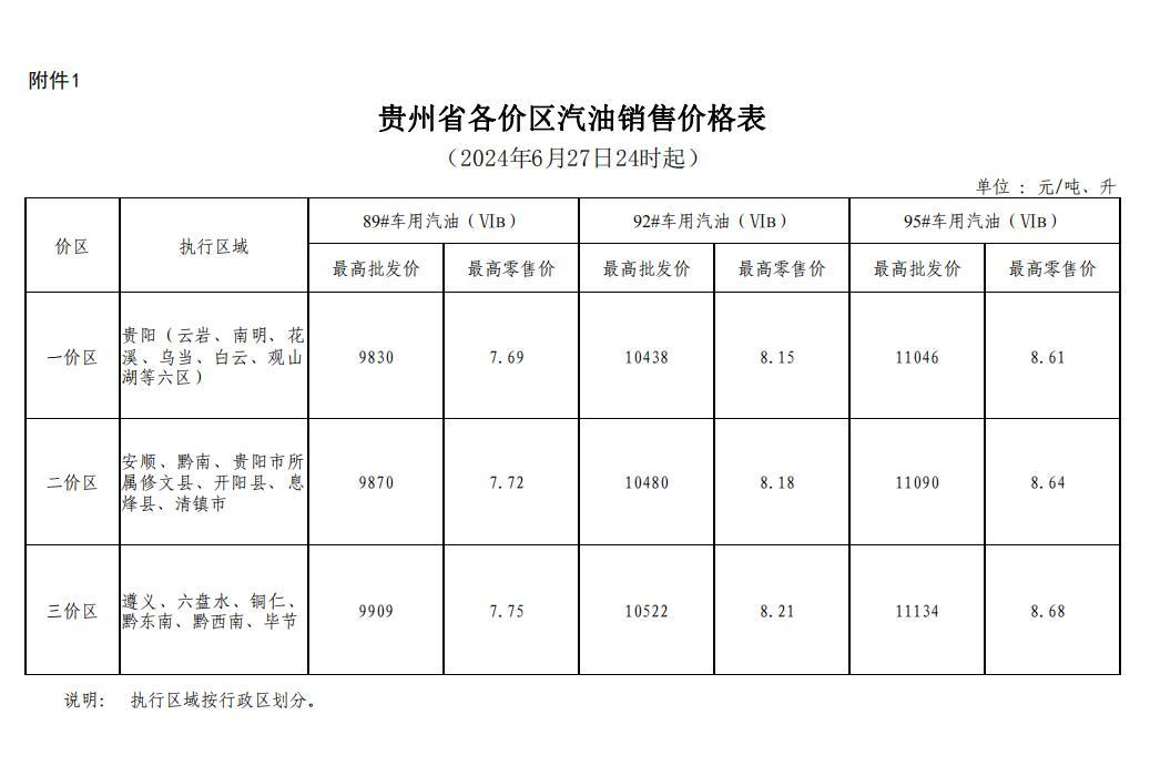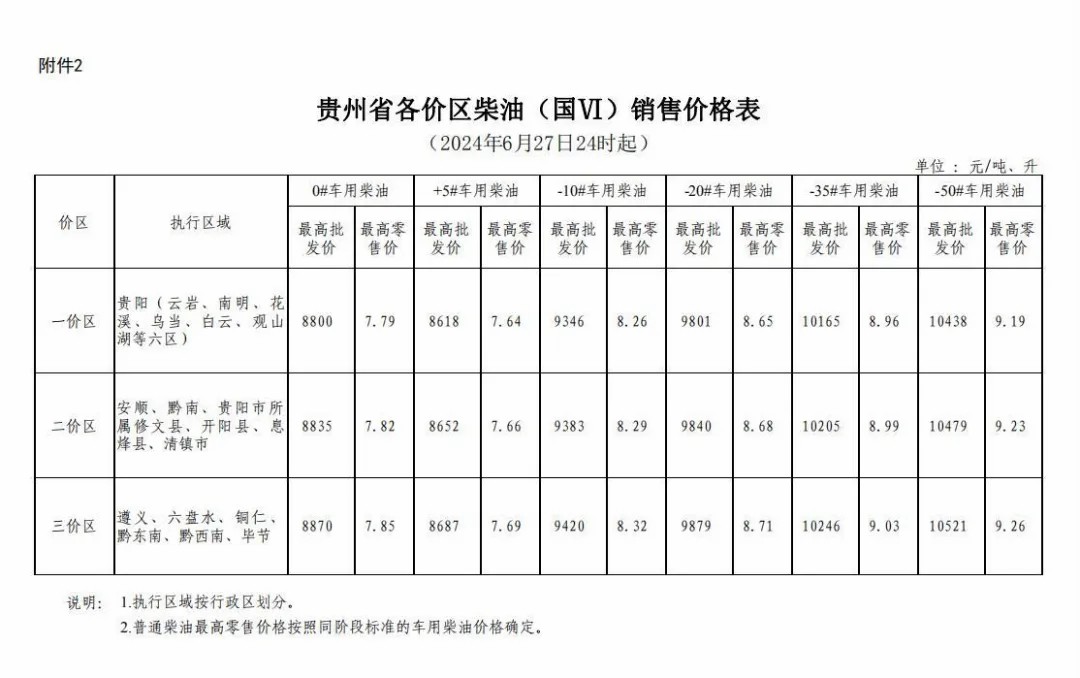 根据成品油价格形成机制,国家发展改革委决定自2024年6月27日24时起上调国内成品油价格。按照国家调整要求和相关规定,我省89#汽油(国VIB)、0#柴油价格每吨在现行标准基础上分别提高210元、200元,具体价格可由各经营企业在不超过最高批发、零售价格的前提下确定。调整后各油品最高价格见附件。