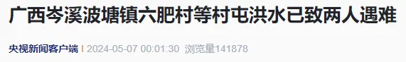持续暴雨导致广西岑溪市波塘镇六肥村等村屯