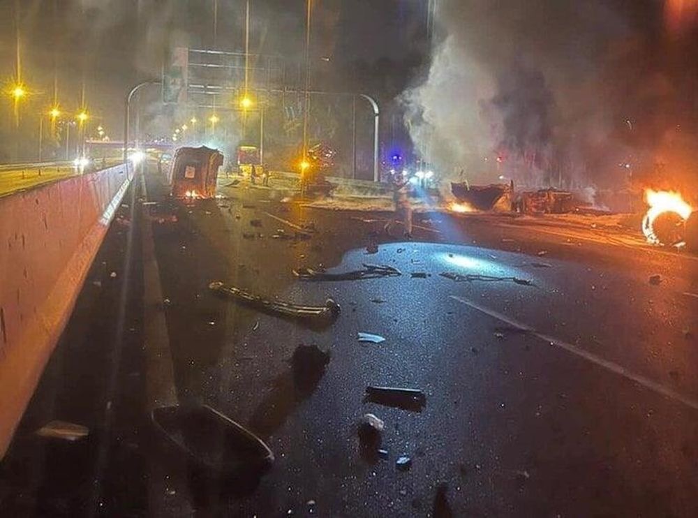 现场目击者称,车祸发生后,火势非常猛烈,并一度蔓延到高速公路护栏外。
