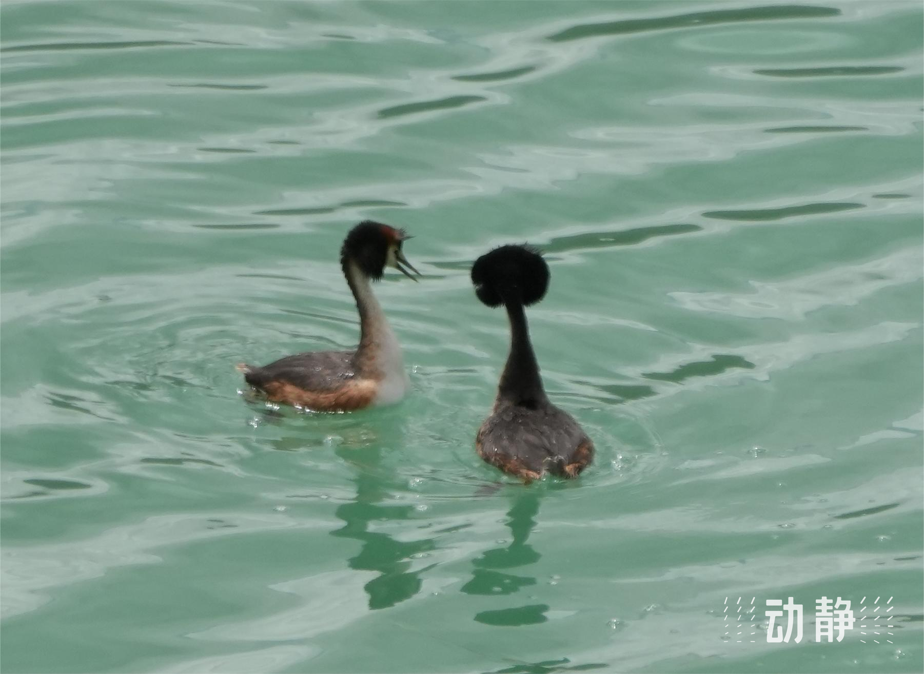 最后回答文中问题:凤头䴙䴘的颈修长,有显著的黑色羽冠,这也是其“凤头”的来历。