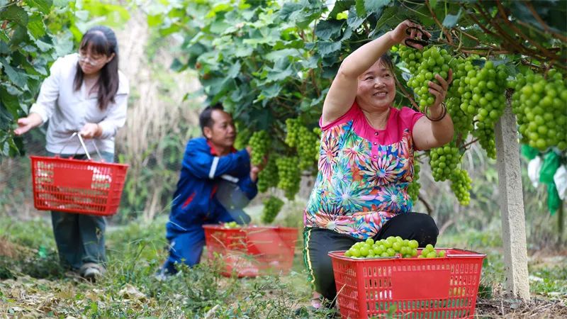 眼下正值葡萄成熟上市的季节,在铜仁市玉屏侗族自治县亚鱼乡沙子坳村龙成树家的葡萄园内,阳光玫瑰葡萄迎来了大丰收。