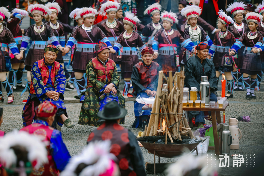 祭萨大典上,村中寨佬坐在正中,村民们手拉着手围成大圆圈,在歌师的领唱下,村民们跟唱萨玛事迹,表达对侗族祖先的怀念。侗家人通过“祭萨”,祈福村寨平安吉祥、五谷丰登。