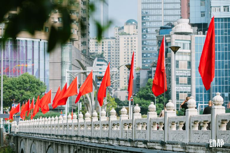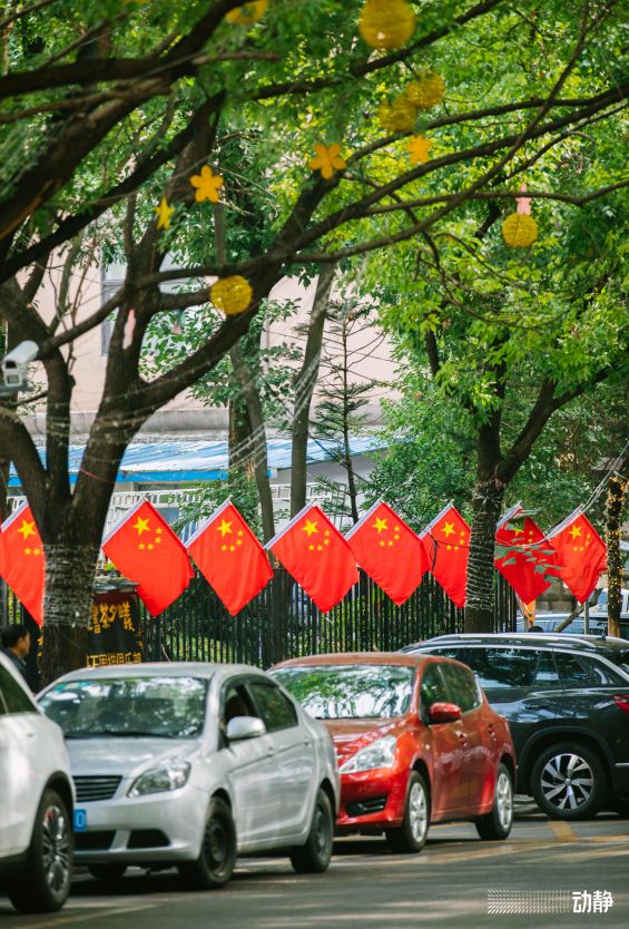 为了庆祝中华人民共和国成立73周年,贵阳市街头早已挂满了鲜艳的五星红旗。他们的点缀让烟火喧闹的城市增添了一份喜悦和祥和。这一抹红色更是让整个贵阳充满了浓浓的国庆佳节氛围感。贵阳市民们怀揣着对祖国的满满祝福,期盼祖国繁荣昌盛。