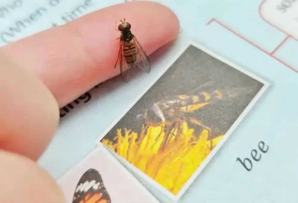 崔宸溪对于各类昆虫了如指掌,根据他的科普,“蜜蜂有两对翅膀、食蚜蝇只有一对;而且蜜蜂的肚子是胖胖的、食蚜蝇很瘦;蜜蜂的触角很明显,食蚜蝇的不明显。”
