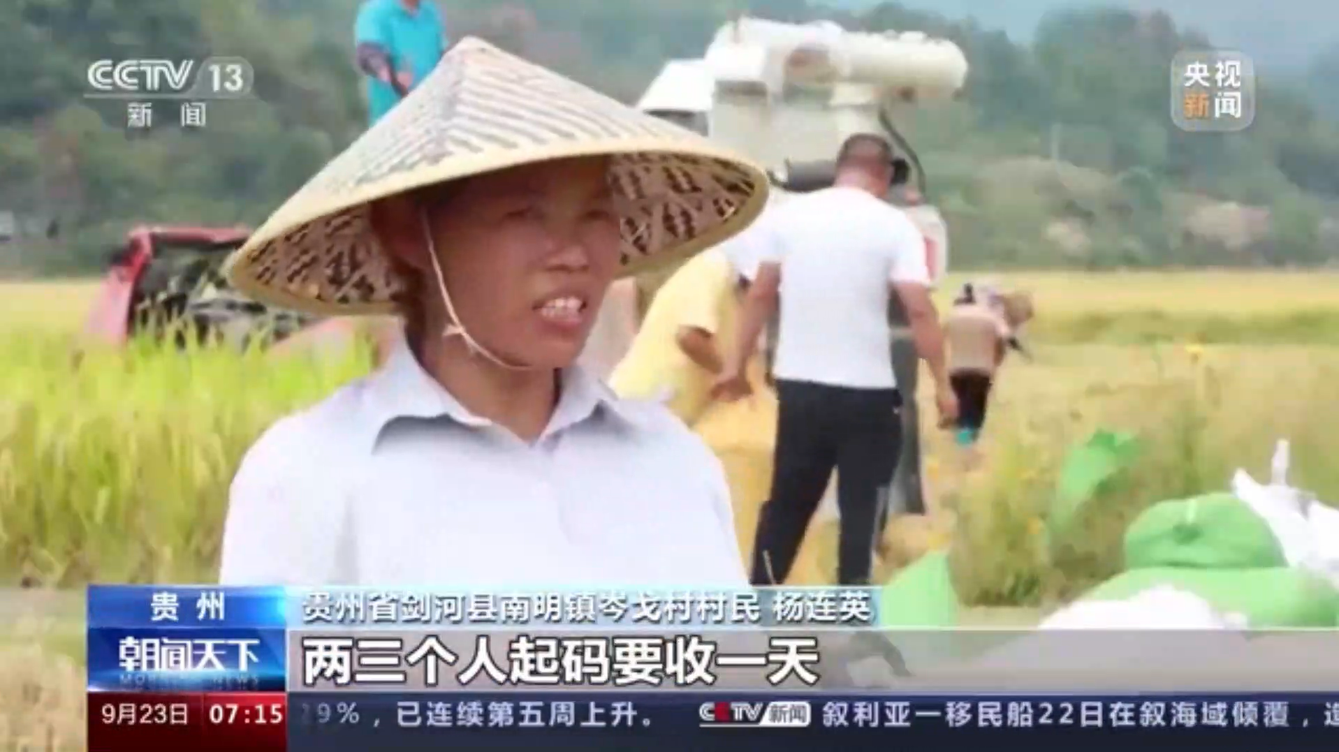 剑河县南明镇岑戈村村民杨连英表示,“我们一般收一亩地,两三个人起码要收一天,但是机器收一小时不到就收完了,机器收肯定快。”