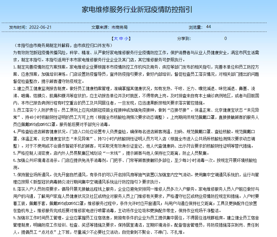 日前,北京市商务局制定、北京市疾控中心发布了新版《家电维修服务行业新冠疫情防控指引》。