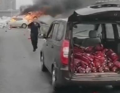 5月12日,苏州,一辆私家车在高架上突然起火,正当司机手足无措时,后车驾驶员打开后备箱,拎起灭火器就冲了上去,用了五六瓶后扑灭大火。好心人名叫王远扬,当时他正载着一车的灭火器去给客户送货,没想到遇到了这场意外。