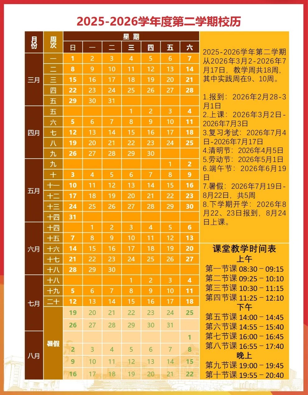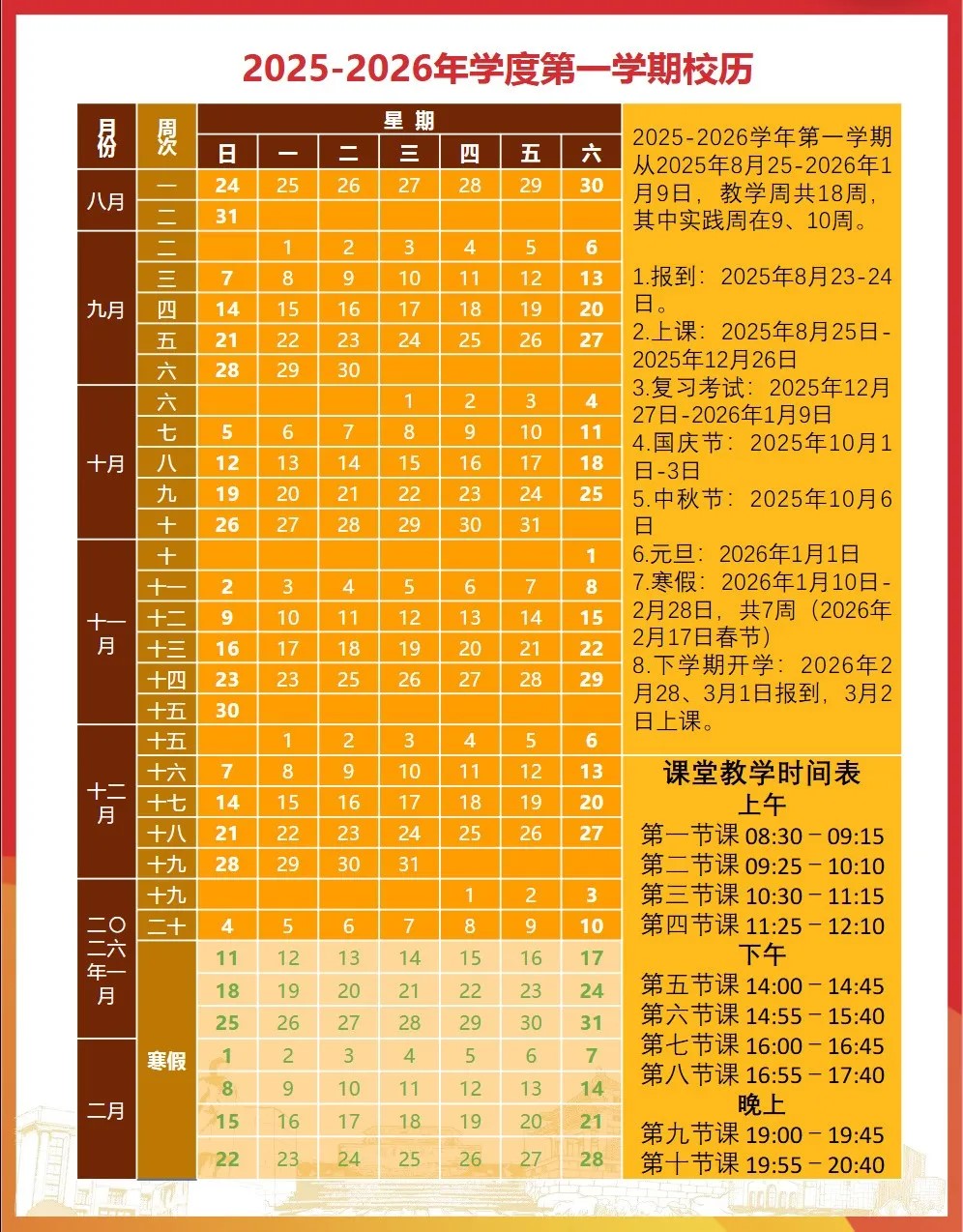 4.2025年9月1日,2022级、2023级、2024级在校生正式上课,共18周,17周为复习周,18-19周考试。