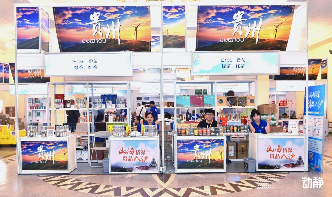 今天(7月20日)上午,第六届上海市对口地区特色商品展销会在上海市展览中心举行。贵州以“山海情深 贵品入沪”为主题在现场设置独立展厅,展出黔酒、黔茶、特色食品、预制菜、果饮、大健康等六类121款贵州优质产品,深受上海市民欢迎。