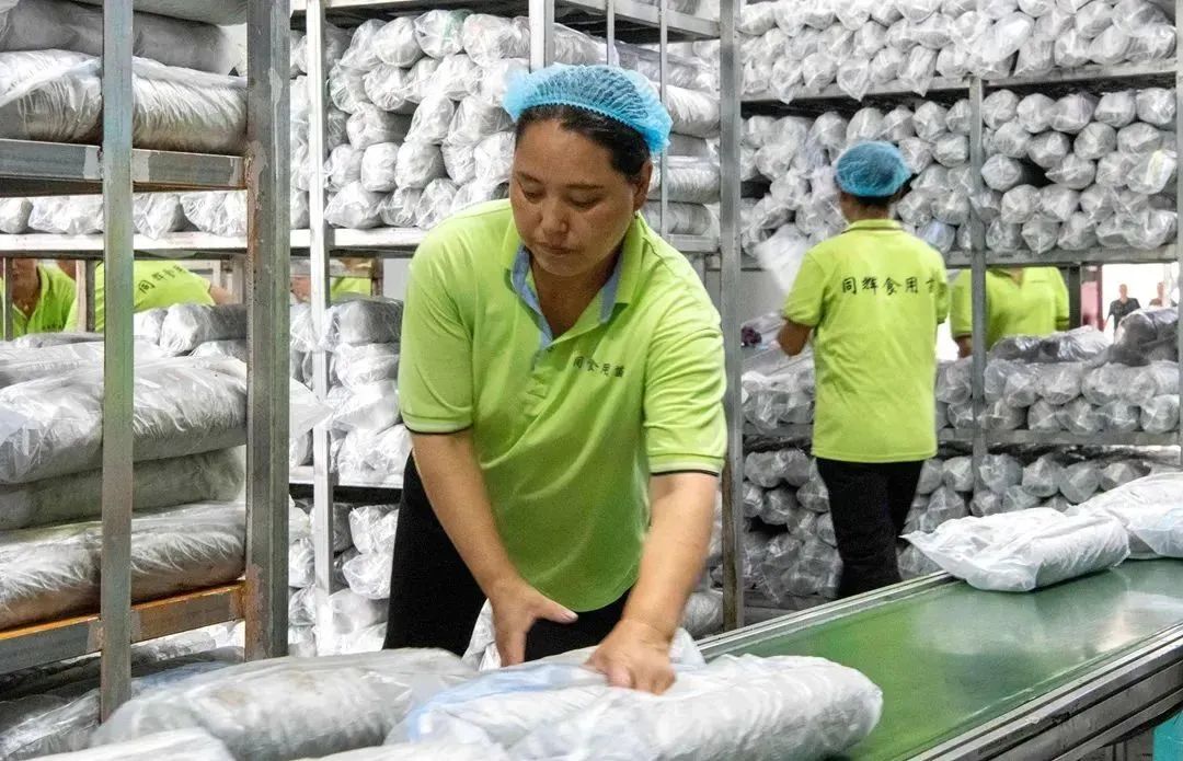 与此同时,位于道真自治县巴渔园区的贵州同辉食用菌发展有限公司,一辆辆卡车排队等候,把培养成熟的菌棒运往全县各食用菌园区,送进菇农大棚。菌棒培养车间,乳白色的菌棒密密麻麻地堆放在培养架上,工人们正给菌棒刺孔、增氧。