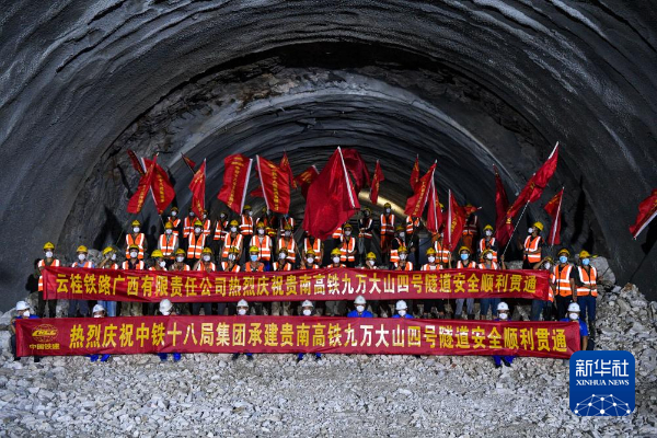 当复兴号驶入贵南高铁九万大山一号隧道时,记者掐了一下表,最终秒表显示动车组通过这座全线最长的17公里隧道总用时4分52秒左右。虽然因接近荔波站动车降速,但这通过速度依然令人震惊。然而,2022年3月24日,九万大山一号隧道贯通的那天,记者乘车在错综复杂的各种横洞、导洞、主洞中反复穿行,整整用了1个多小时才从隧道一头到了另一头。那天记者问过当地一位老人,如果从山这边的贵州省荔波县捞村翻山到对面的广西去需要多长时间,老人告诉记者:“这里没有路……”