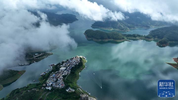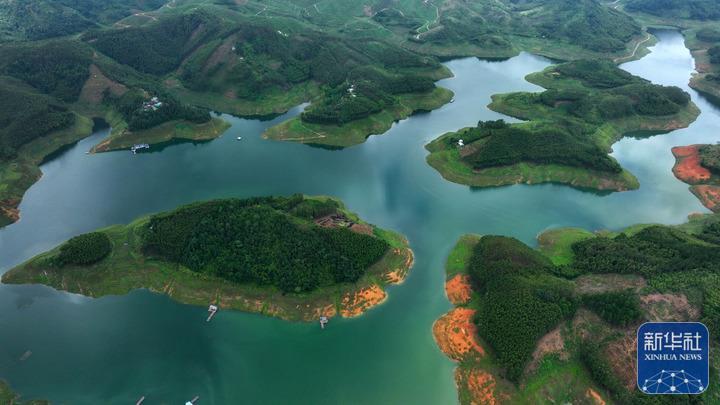 8月25日拍摄的贵州省黔西南布依族苗族自治州兴义市万峰湖景区的风光(无人机照片)。新华社记者 杨楹 摄