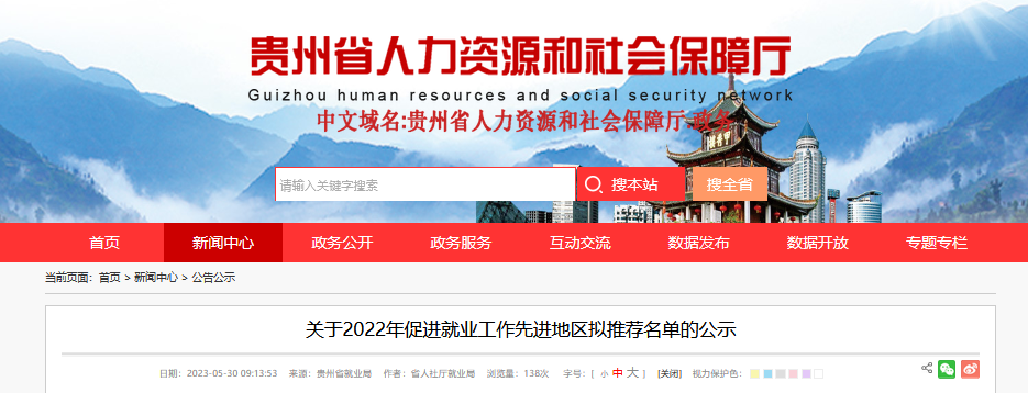 根据《省人民政府办公厅关于推动高质量发展对真抓实干成效明显地方进一步加大激励支持力度的通知》,按照《贵州省人力资源和社会保障厅 贵州省财政厅关于印发贵州省就业创业工作成效督查激励措施实施办法的通知》有关要求,综合考虑各市(州)城镇新增就业、离校未就业高校毕业生就业、促进脱贫劳动力就业、促进易地搬迁劳动力就业、促进失业人员和就业困难人员就业、地方资金投入、参加创业培训合格率、创业担保贷款发放金额等,拟向省人民政府办公厅推荐激励的2022年促进就业工作先进地区名单为黔东南州、铜仁市。