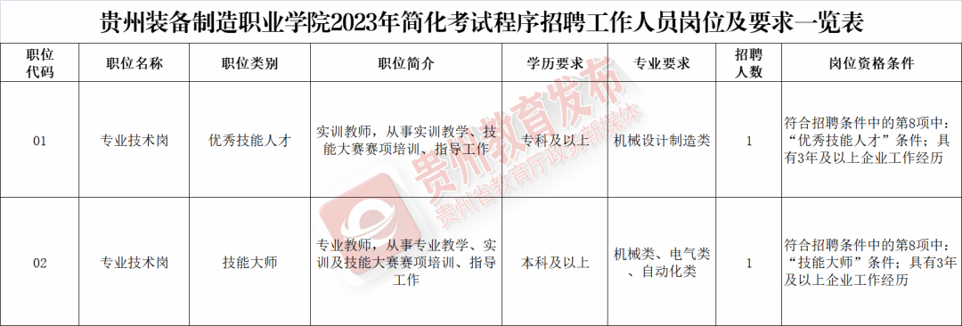 贵州装备制造职业学院2023年简化考试程序公开招聘工作人员,6月13日至6月15日报名