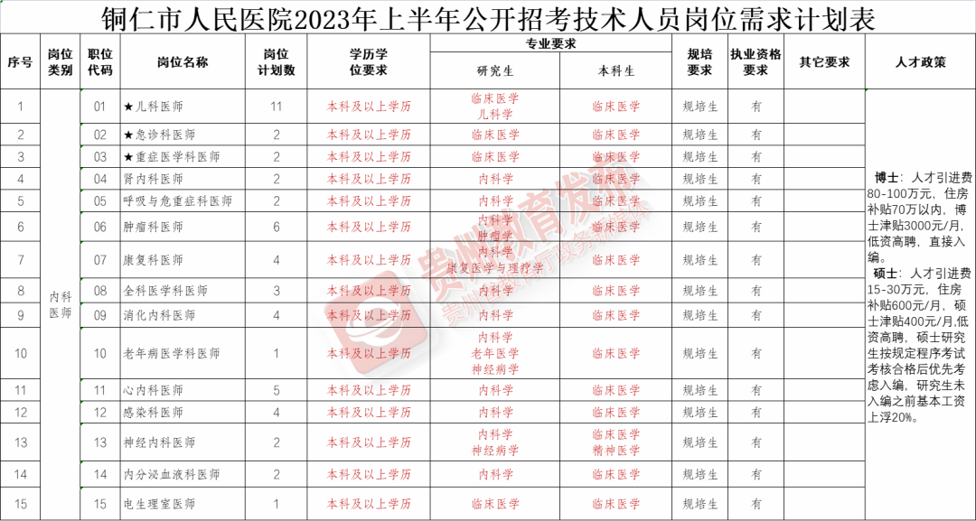 铜仁市人民医院2023年上半年公开招考技术岗位人员115名,6月12-16日报名