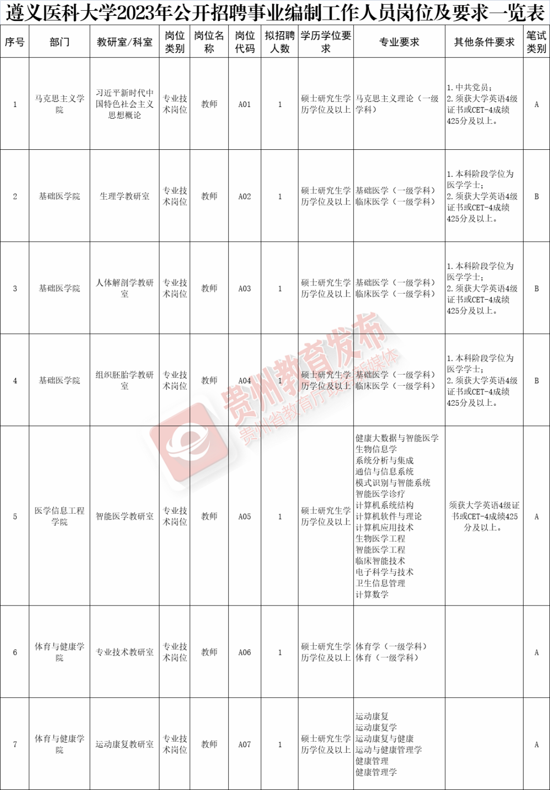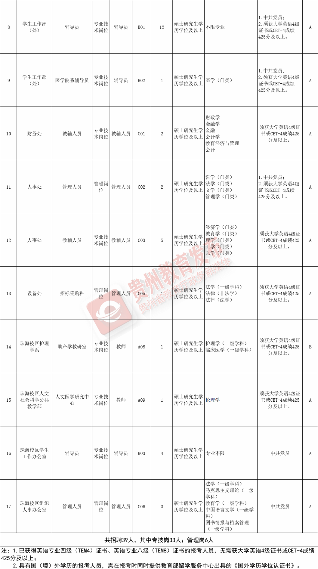 遵义医科大学2023年招聘39名事业编制工作人员,6月12-14日报名