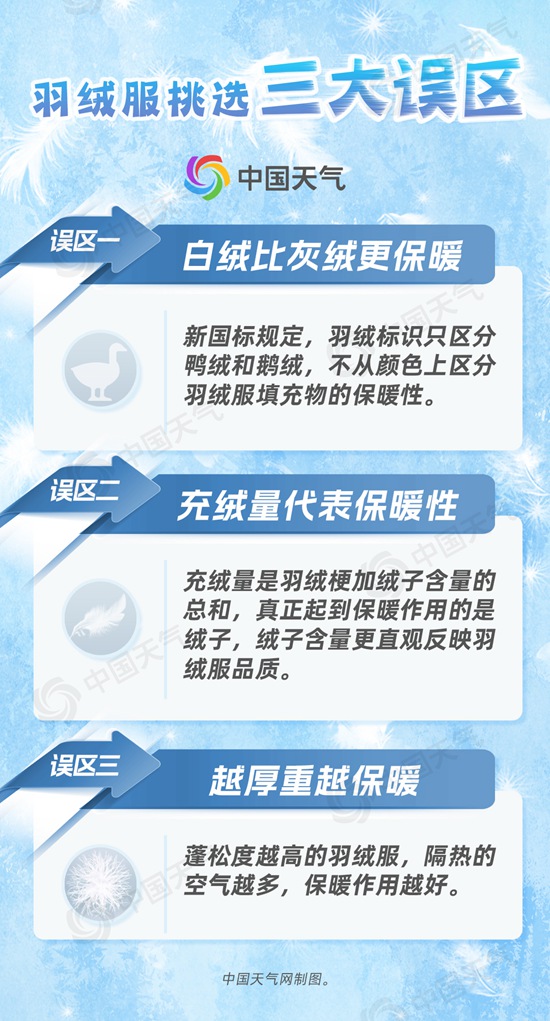 冬天的脚步继续南压,天气越来越冷,羽绒服作为终极保暖神器必不可少。中国天气网盘点了羽绒服挑选的三大误区,你中招了吗?