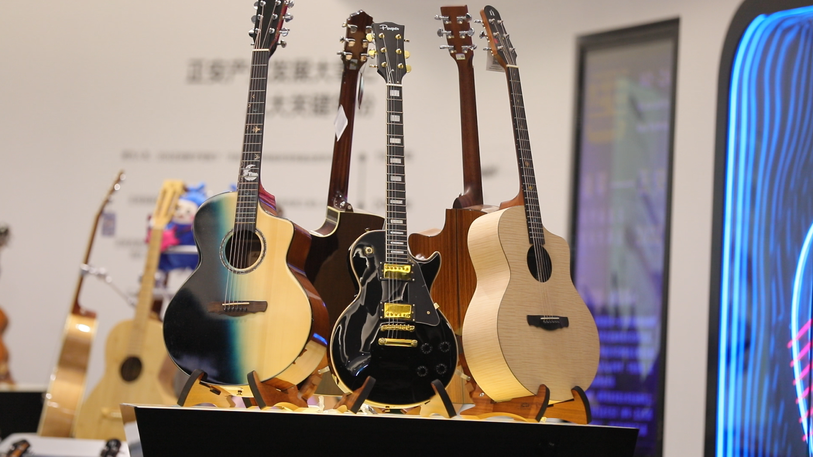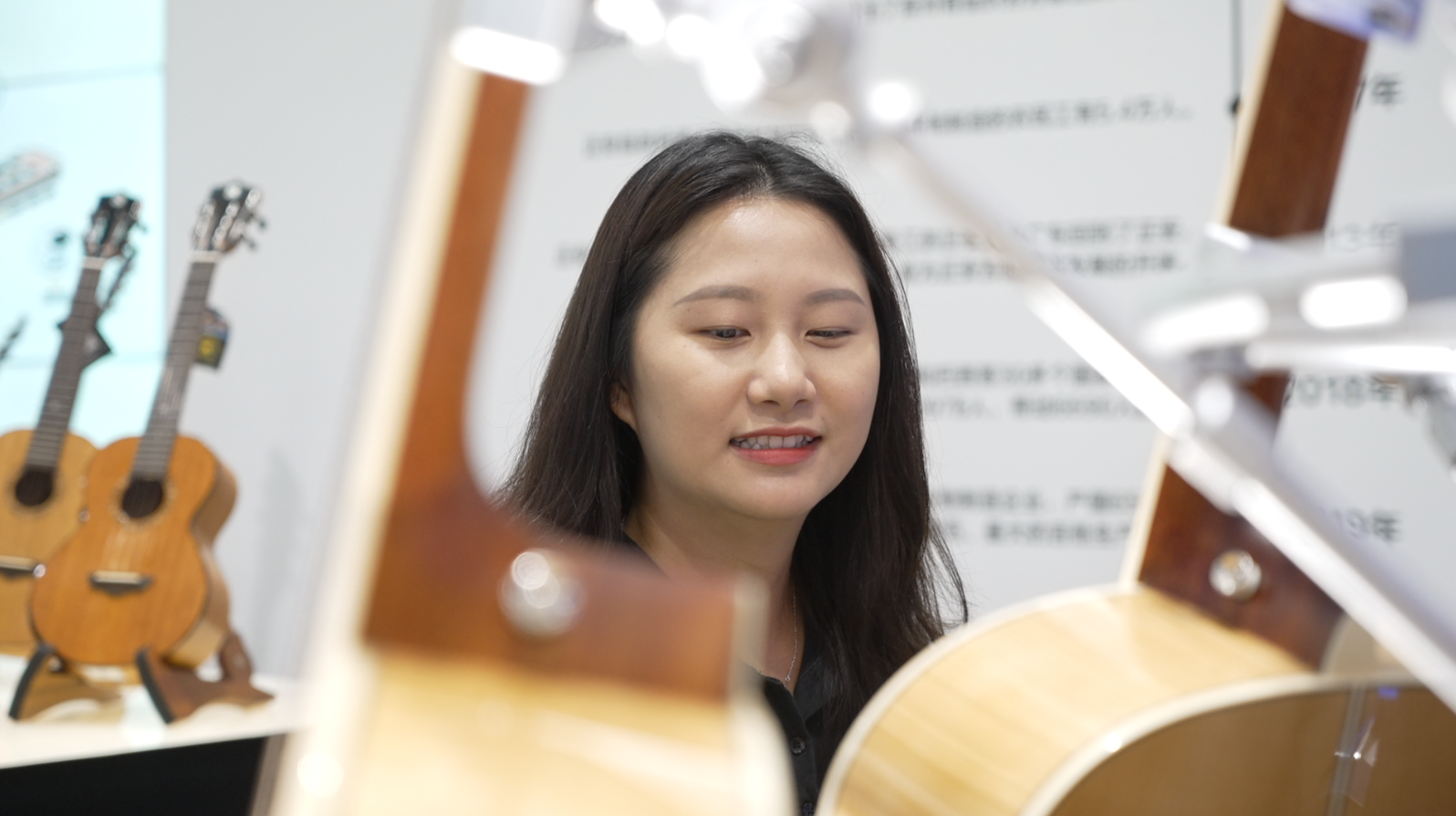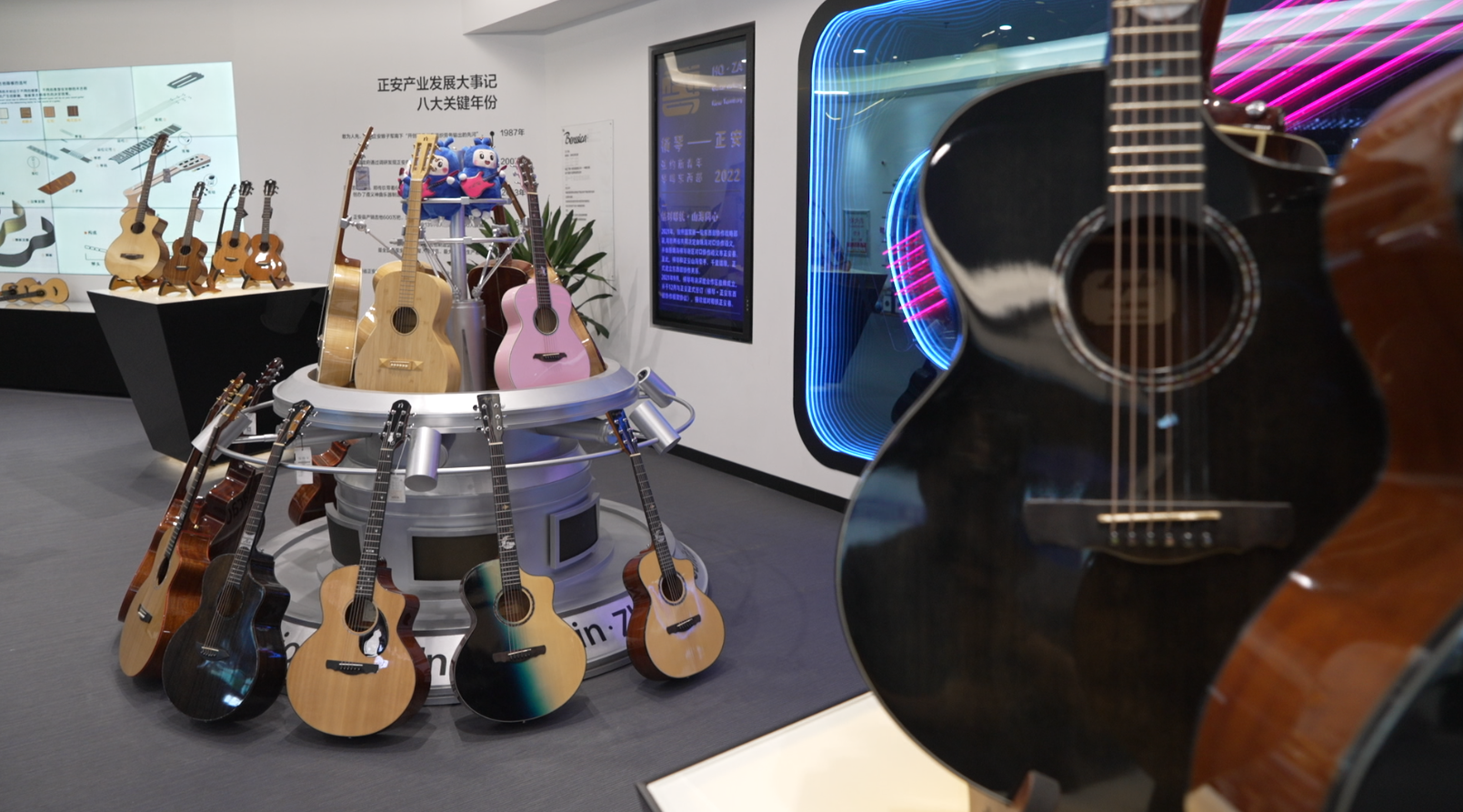 据了解,入驻吉他馆参展的有神曲、娜塔莎、威伯、声音花园等来自正安的10个吉他品牌,包含古典吉他、民谣吉他、电吉他以及尤克里里,可以满足不同消费者的需求。