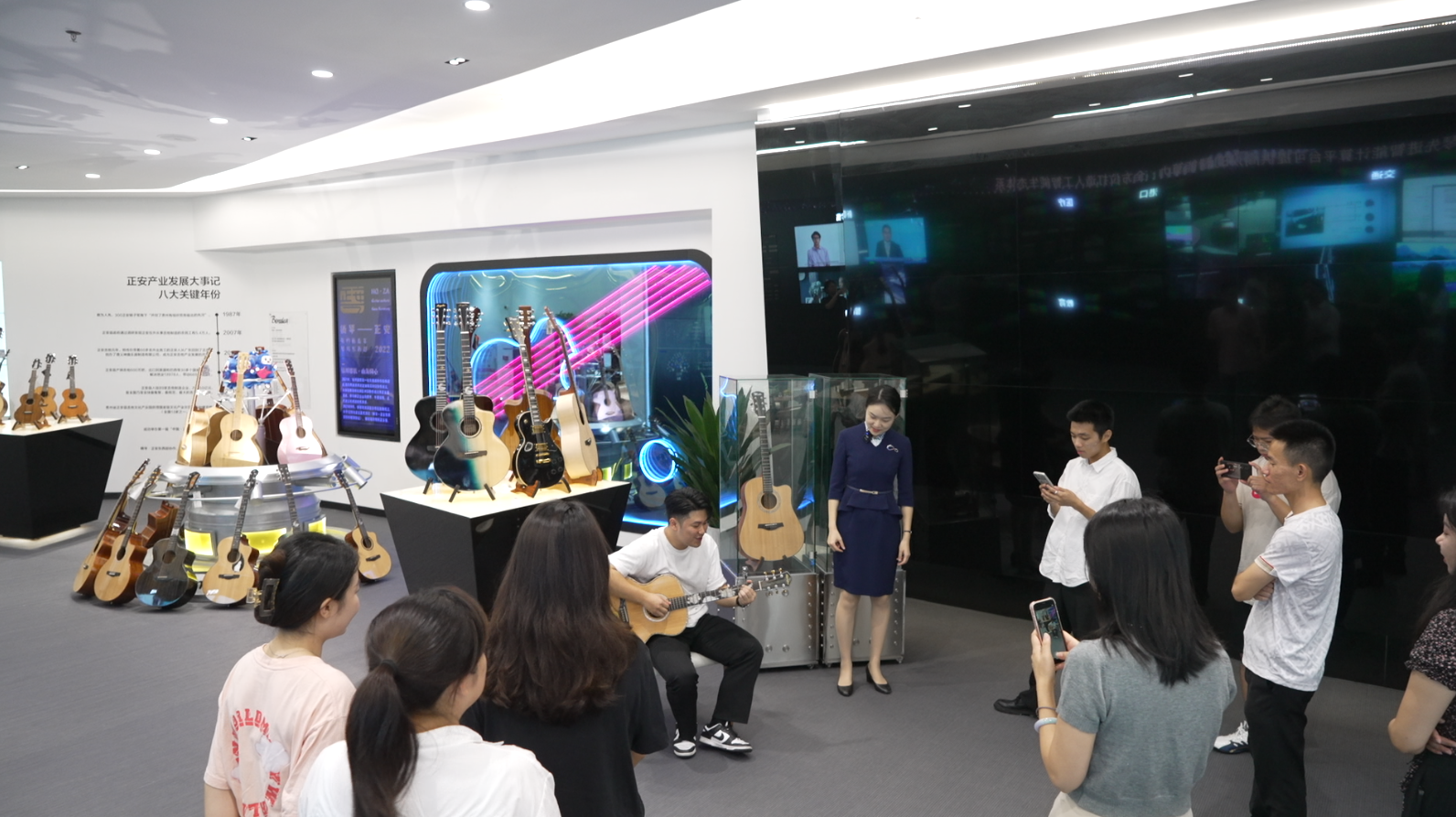 横琴粤澳深度合作区·正安吉他馆是正安经济开发区管理委员会与大横琴发展公司合作共建项目,致力于打造合作区首个东西部协作“产业+文化”示范展示窗口。吉他馆自去年6月份开馆以来,通过提供正安吉他展示、销售、培训、交流、直播、演出等服务,打造粤港澳吉他音乐爱好者的交流空间,同时借助澳门与国际接轨的这一平台积极“走出去”,打造正安吉他国际化品牌。