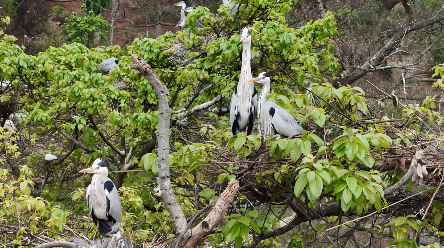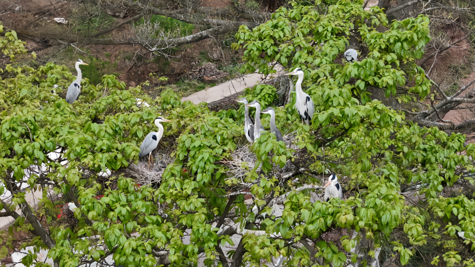 年复一年,苍鹭白鹭选择定居仁怀市合马镇赤水河畔,它们的家也在不断扩大,从开始几窝发展到现在一百窝(三四百只),大部分的鹭邻居冬天也不离开了。为不打扰鹭邻居生活,原本住在树下的罗昌旭一家搬迁两次。“太多了,一拉了屎,特别落雨天,臭得难闻,虽然臭是臭,当做成自己的亲生孩子一样。就跟老的商量把房子修稍微离远一点,稍远一点的位置。”罗昌旭笑着说,虽隔得远,都能感受到树上鸟儿的欢闹。