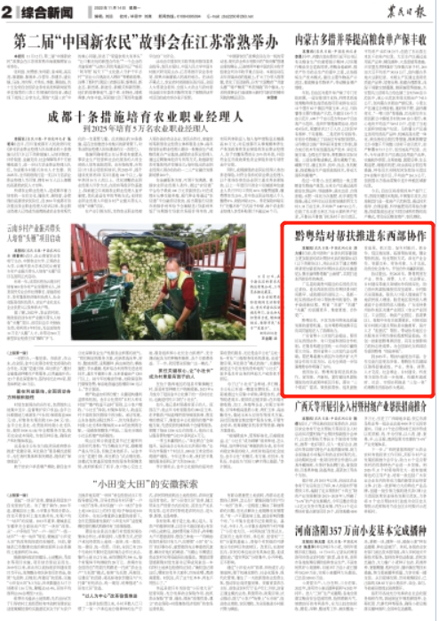 广东省第十三次党代会提出,要用好东西部协作、对口支援和省际合作机制,在服务构建全国统一大市场中赢得更大市场。贵州省第十三次党代会也明确,要把粤港澳大湾区作为贵州扩大开放合作的主攻方向。这为全省进一步加强粤黔协作明确了方向。