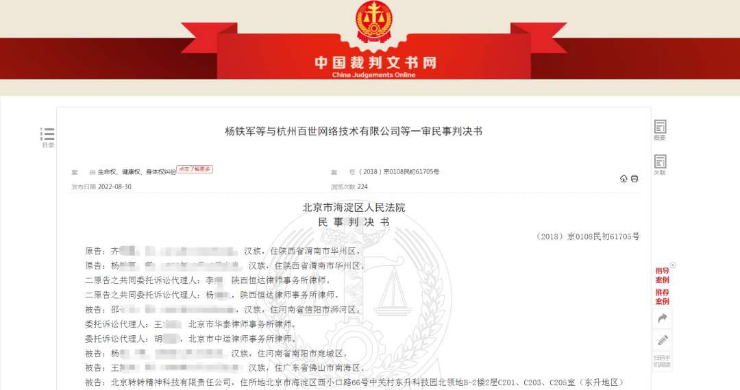 近日,北京市海淀区人民法院公布了一起生命权、健康权、身体权纠纷案件的民事一审判决书。