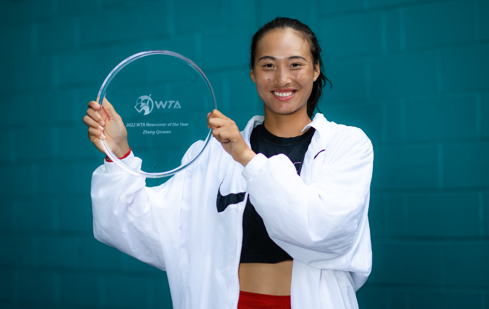 2022赛季WTA年度最佳新人郑钦文领取奖杯。中国新星正处在职业生涯最高排名No.23,目前郑钦文正在全力备战WTA1000迈阿密站,她将在第二轮对阵贝古。
