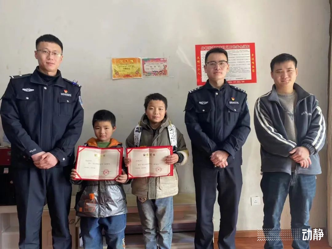 “代羽翔、代嘉玮同学,你们捡到的手机,现已将手机还给了失主。你们表现很棒,值得学习,这是我们给你们的礼物,对你们拾金不昧的精神表示鼓励,同时也向你们致敬!”1月31日中午,丹都派出所民警带着奖状和礼物来到两位小朋友家中上门送奖。