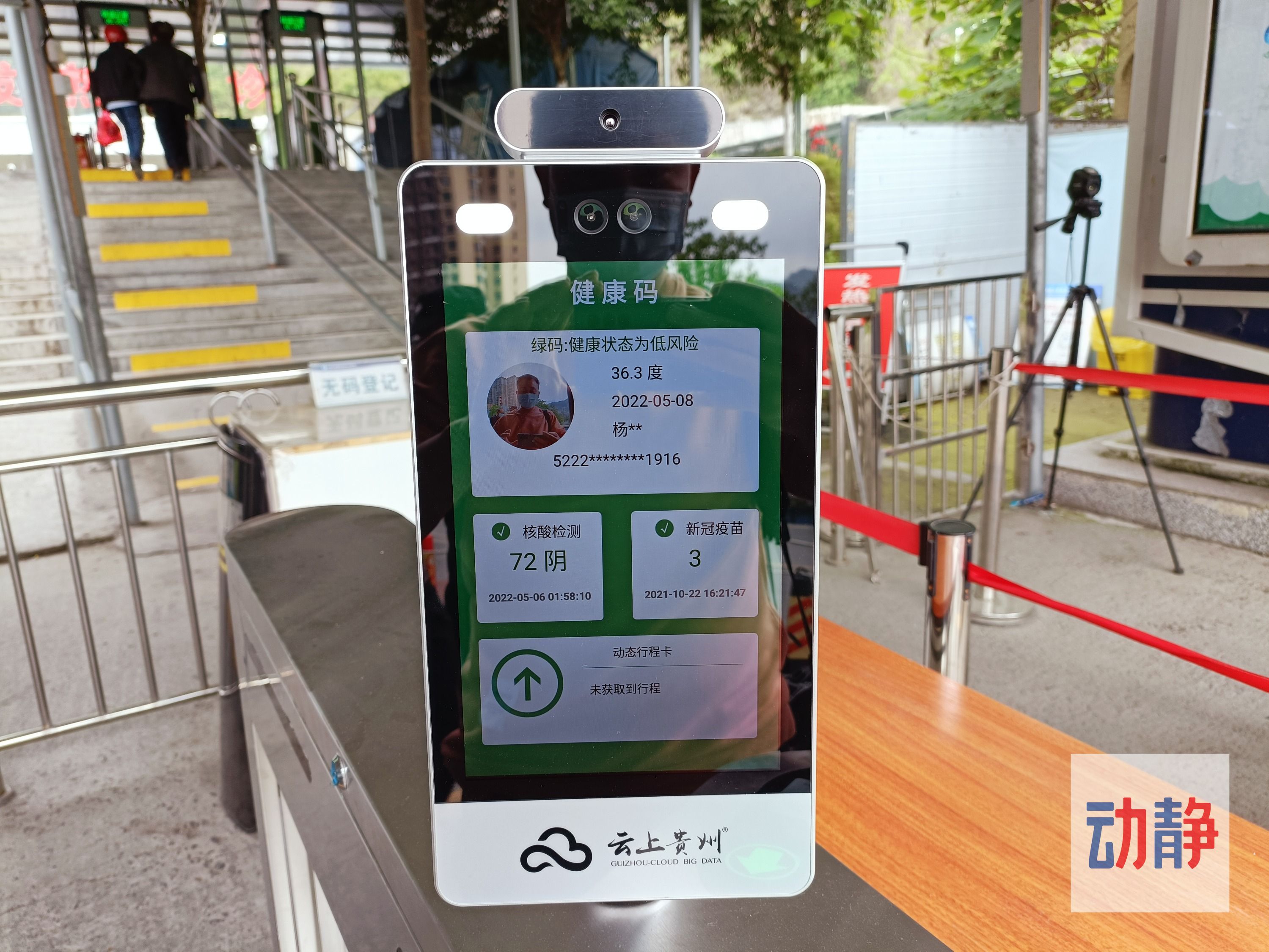群众只需将身份证放在闸机识别区验证,体温、健康码、疫苗接种情况立即显示在屏幕上,随即闸机的两扇叶片就会自动缩回,人就可以通过。进出人员平均只需3秒钟,就可以顺利通过闸机。
