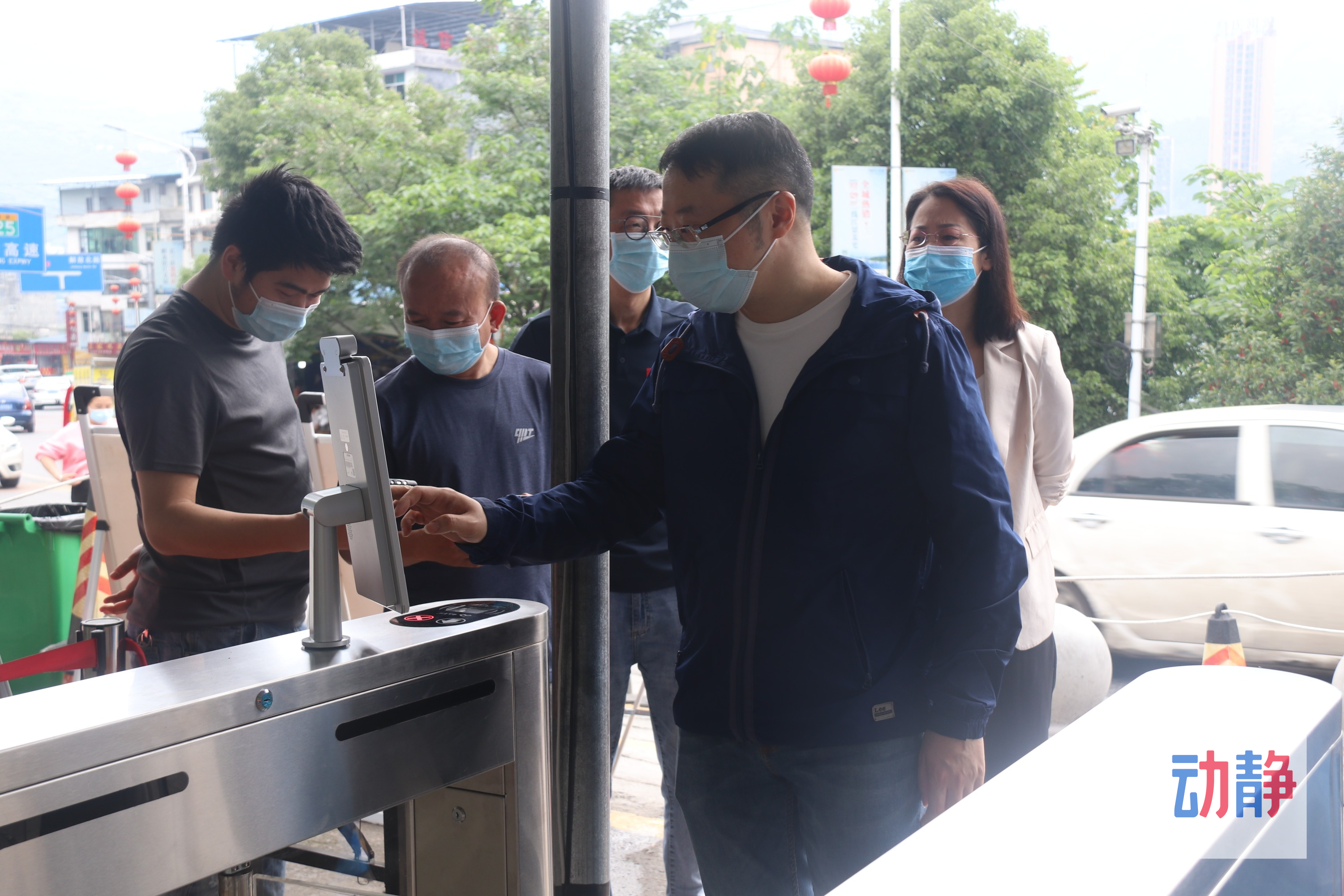 近日,在沿河县人民医院入口处和沿河客运站,记者看见工作人员正引导进入医院和客车站的人员有序进入。