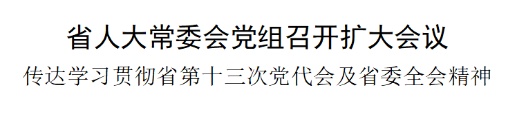 4月29日,省人大常委会党组召开扩大会议,传达学习贯彻省第十三次党代会、省委十二届十一次全会、省委十三届一次全会精神。