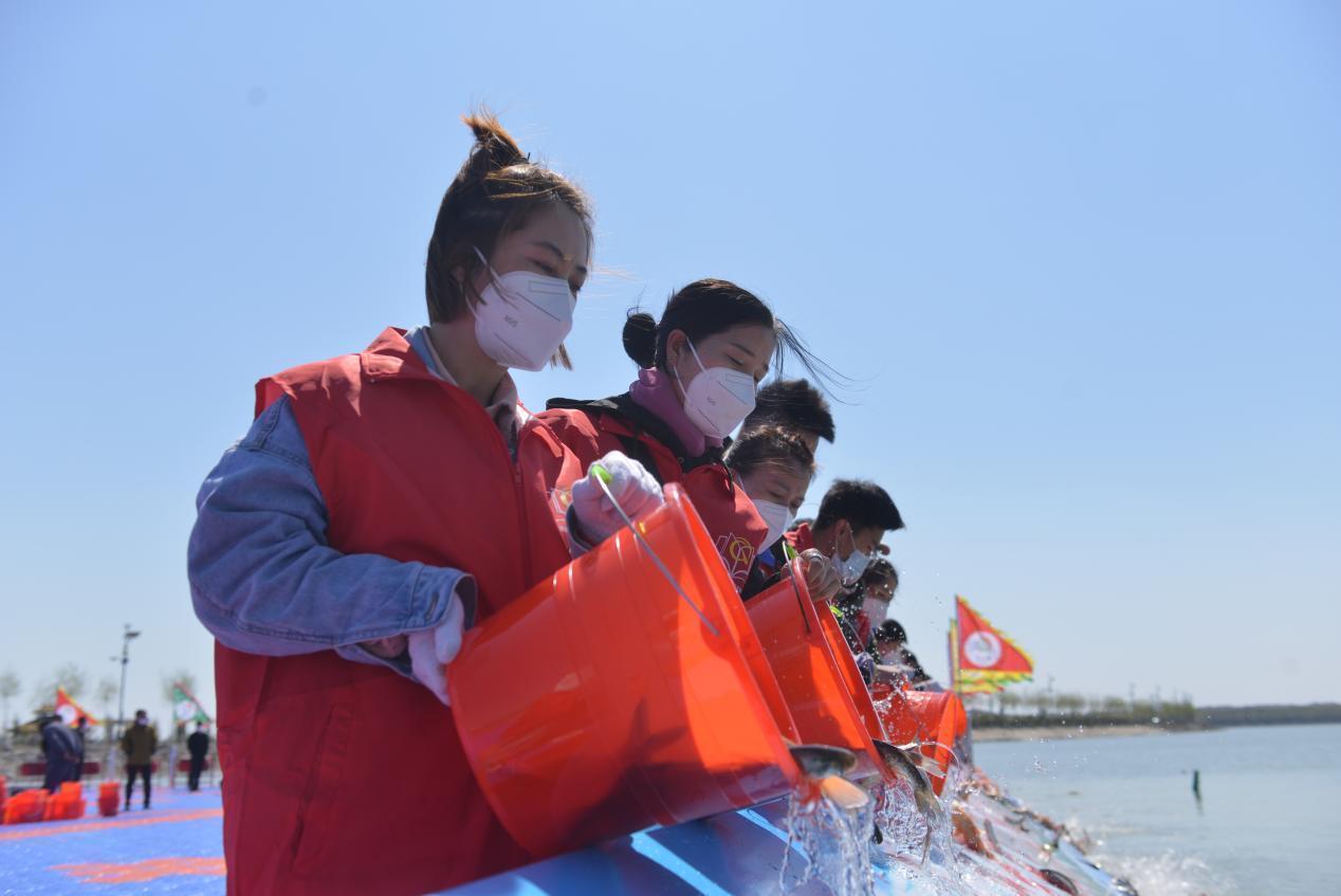 不竭泽而渔,才能年年有鱼。增殖放流现场,“鱼把头”张文边用手比划边说:“现在捕鱼用的都是六寸网眼,每个眼有巴掌那么大,只捕捞大鱼。”