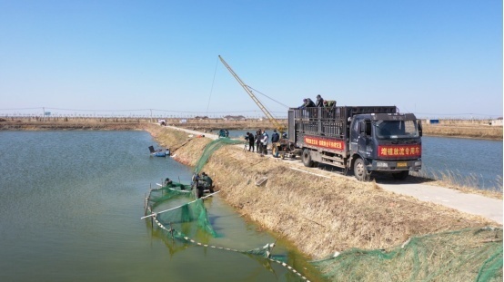 下网、拉网、出水、装车……距离查干湖湖面不足百米的查干湖名优良种场,水上陆地协同作业,渔工们忙碌不停。一个多小时后,一网两万斤左右的鱼苗出水。渔工们将这些鱼苗用专业设备运输,最后投放进查干湖。