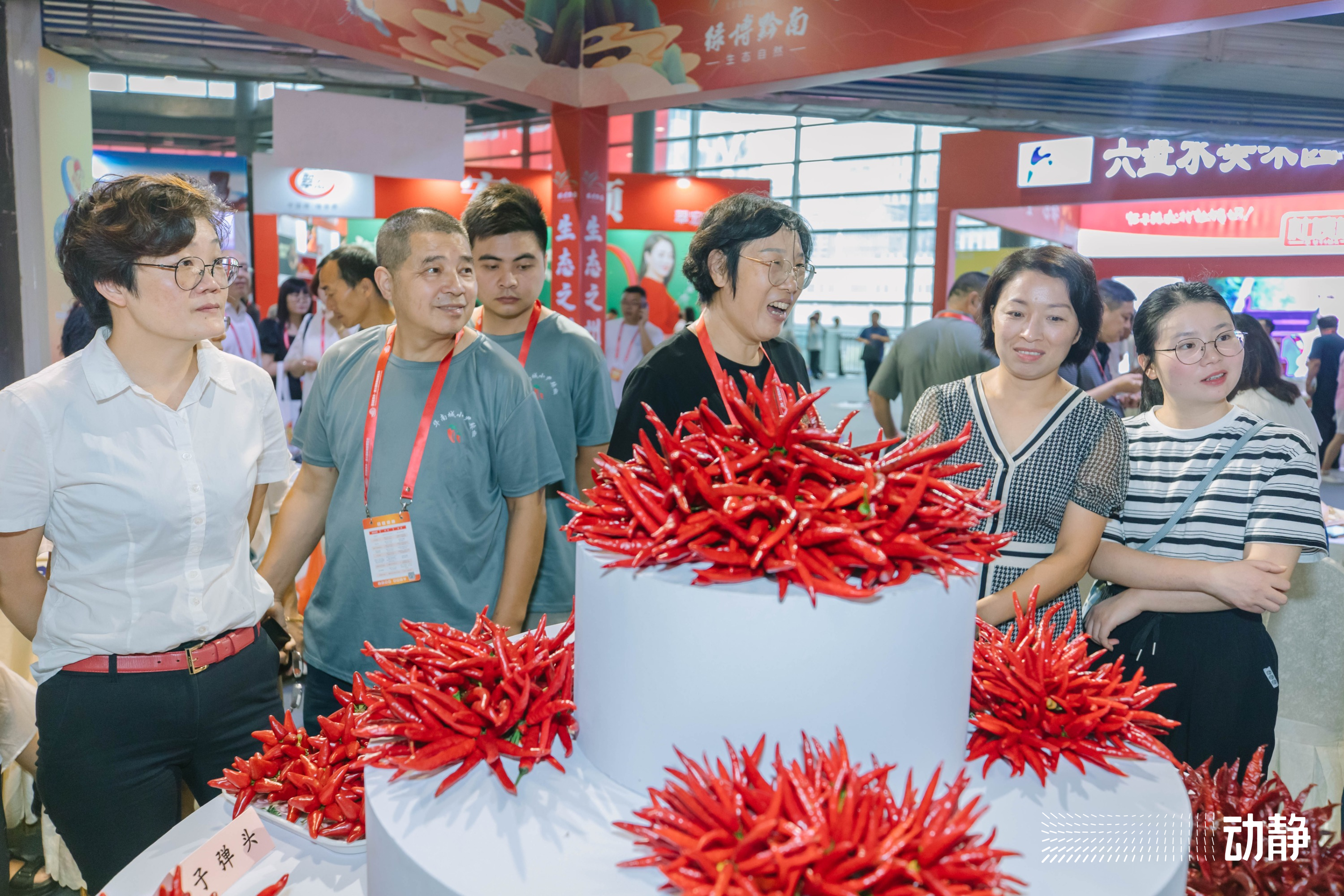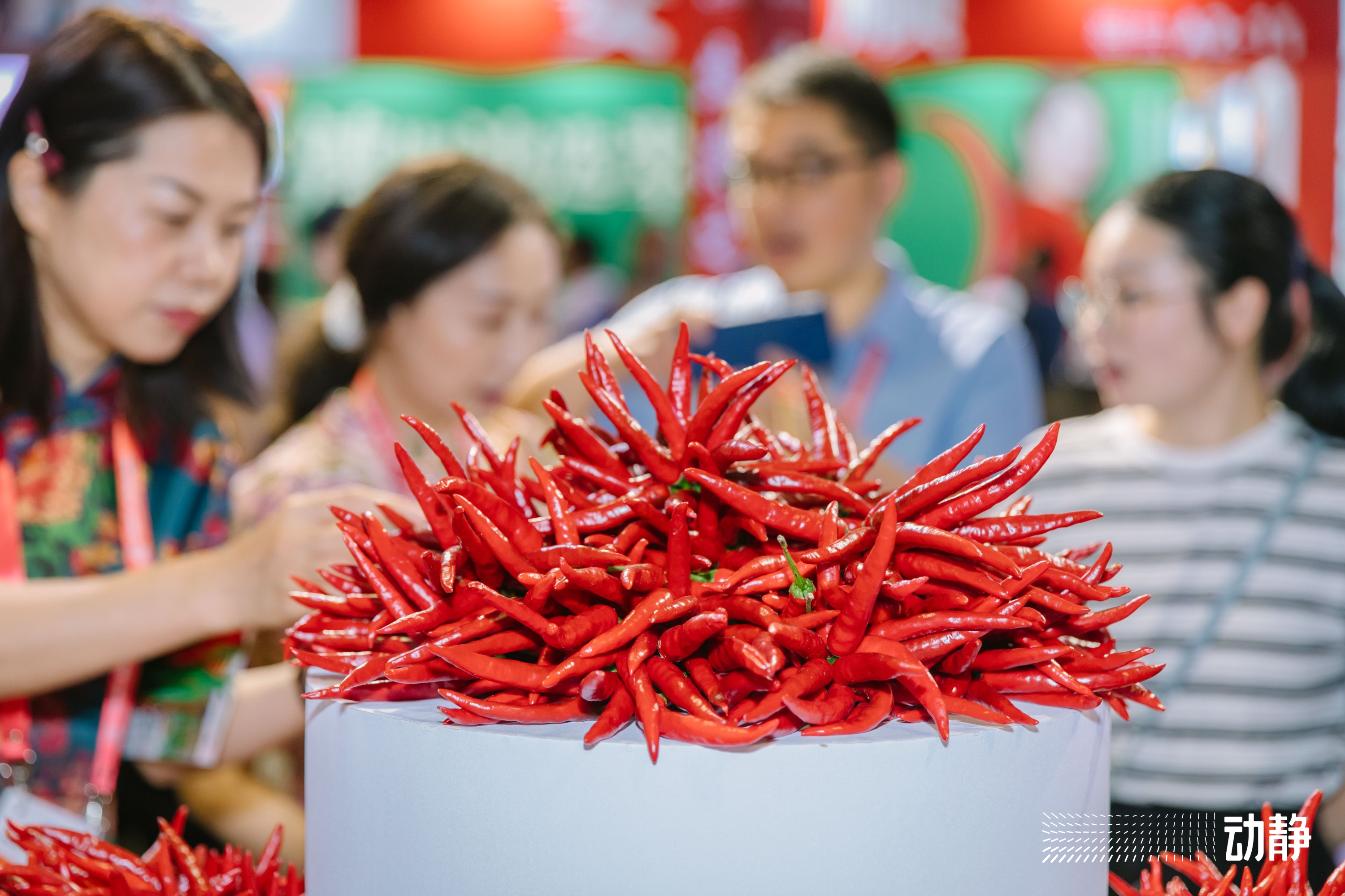 活动现场,328个展位上,各加工企业展出了门类丰富的辣椒产品,糟辣椒、油辣椒、泡辣椒、糊辣椒、烧椒,以及各式各样的辣椒酱琳琅满目。