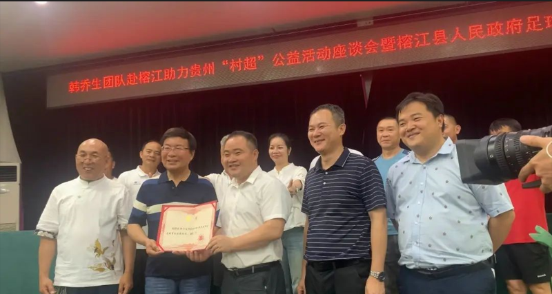 当日,韩乔生还被聘任为了榕江县足球事业发展顾问,他也从点球赛制、男女足搭配上场、突出民族文化展示等多方面为榕江“村超”发展支招,“希望榕江'村超'能凭借民族文化和足球历史打好差异牌、特色牌,更加地深入人心。”他表示,将尽力邀请身边体育界、文化界的名人朋友来为榕江“村超”做推介。