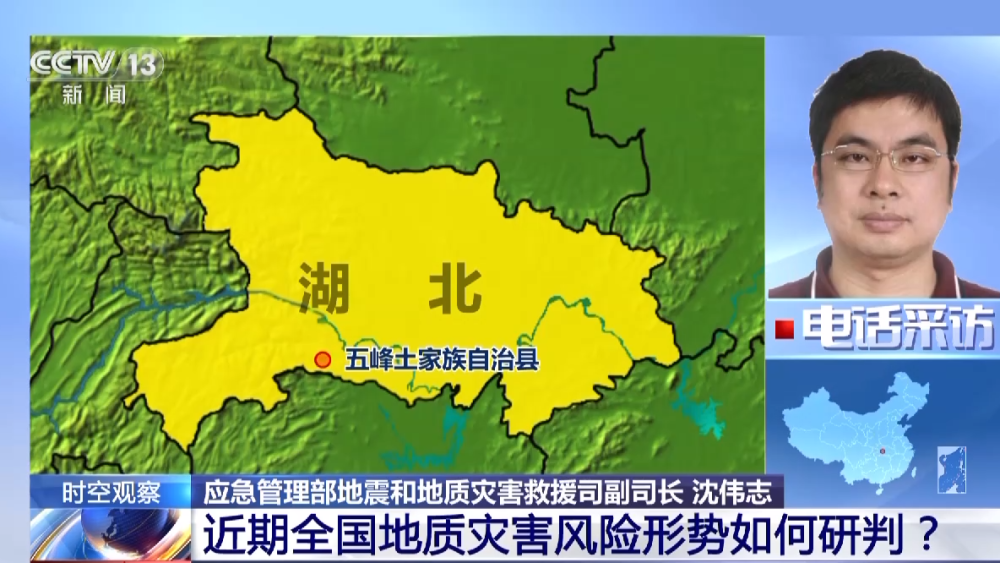 应急管理部地震和地质灾害救援司副司长 沈伟志:每年的七、八、九三个月,是我们国家地质灾害最为高发的时期。根据以往的数据统计,每年80%的地质灾害主要在此期间发生。今年汛期以来,全国虽然总体的降雨量相比往年偏少,但是我国南方的一些地区的局地降雨量还是很大的。比方说前几天的重庆万州。而且这些降雨的区域重合度很高,连续几轮降雨下来,山体土壤含水力已经接近饱和,接下来一旦叠加新一轮的降雨,崩塌、滑坡、泥石流等地质灾害发生的风险就会很高。