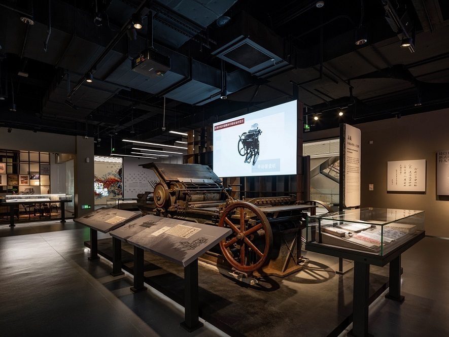 印刷技术馆则以近代六大印刷技术的传入与发展为切入点,展现中国出版印刷技术从传统向现代的转型,以及“印刷无处不在”对社会进步、人们生活的改变。展厅中有一台晚清时期引入中国,几经技术改造,服务印刷业百年的石印机,长4米,重4吨,经修复后仍能运转,为印刷技术馆镇馆之宝。此外,该馆还展示了民国时期的中文打字机、油印机,印钞用凹版雕刻工具等,其中1910年商务印书馆五彩石印的《南洋劝业会场图》、徐天池花卉珂罗版印版等尤为罕见。