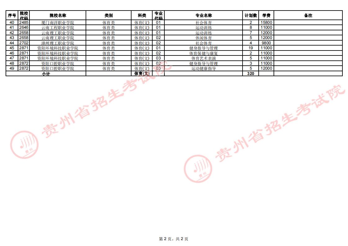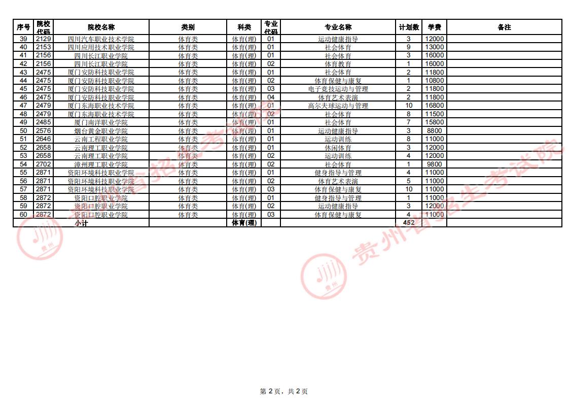 附:体育类高职(专科)院校征集志愿统计表