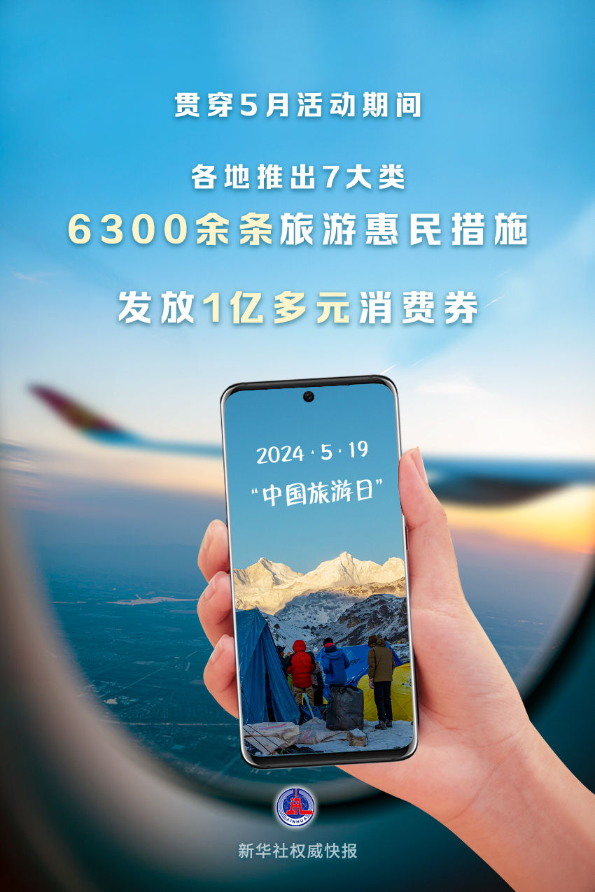 记者从文化和旅游部了解到,今年“5·19中国旅游日”活动期间,政企银商协同更加紧密,各地携手行业协会、平台企业、电信运营商、金融平台等,推出7大类6300余条惠民措施,发放总额1亿多元的消费券,其中包括景区降价、免费等优惠措施,旅游企业免费、打折等优惠活动,更好满足大众文化和旅游消费需求。