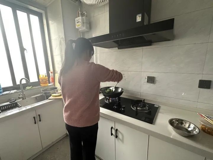 在公共厨房做饭的吴大姐不怎么说话,同样不掩饰住进小家的开心。