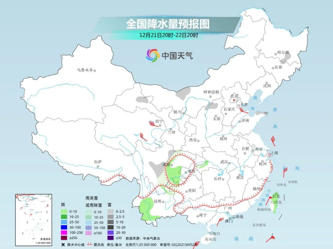 明后两天,冷空气还将继续南下影响黄淮到南方地区,南方大部气温将陆续降至近期低点,多地将刷新今冬以来的新低。最低气温0℃线将抵达贵州南部至华南北部一带,这也意味着全国约九成国土将被“冰冻”。