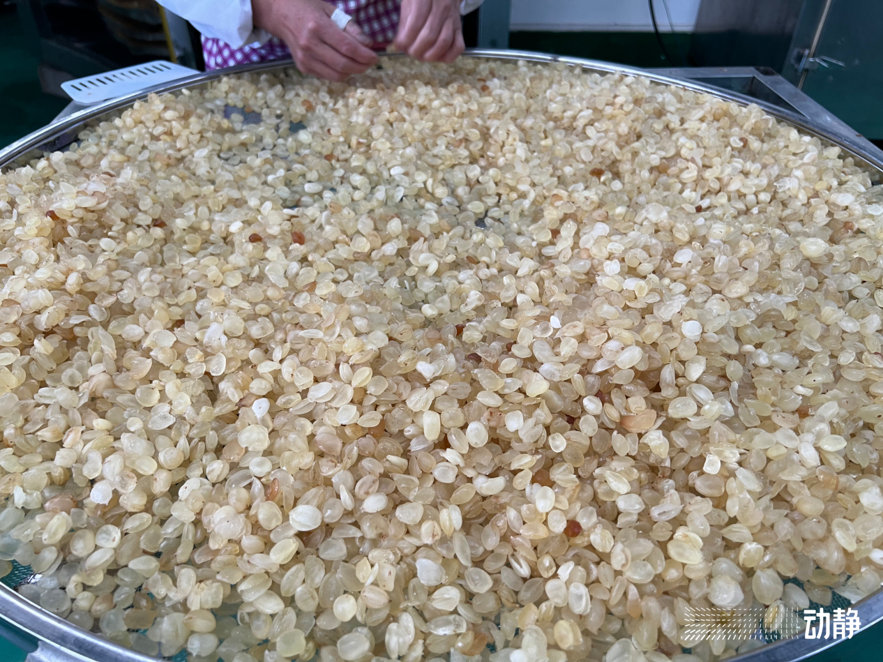 在织金县猫场镇皂角产业园的皂角加工车间里,工人熟练地剥去皂角籽的皮,去除胚芽,分拣皂角米,打包装车,繁忙而有序。