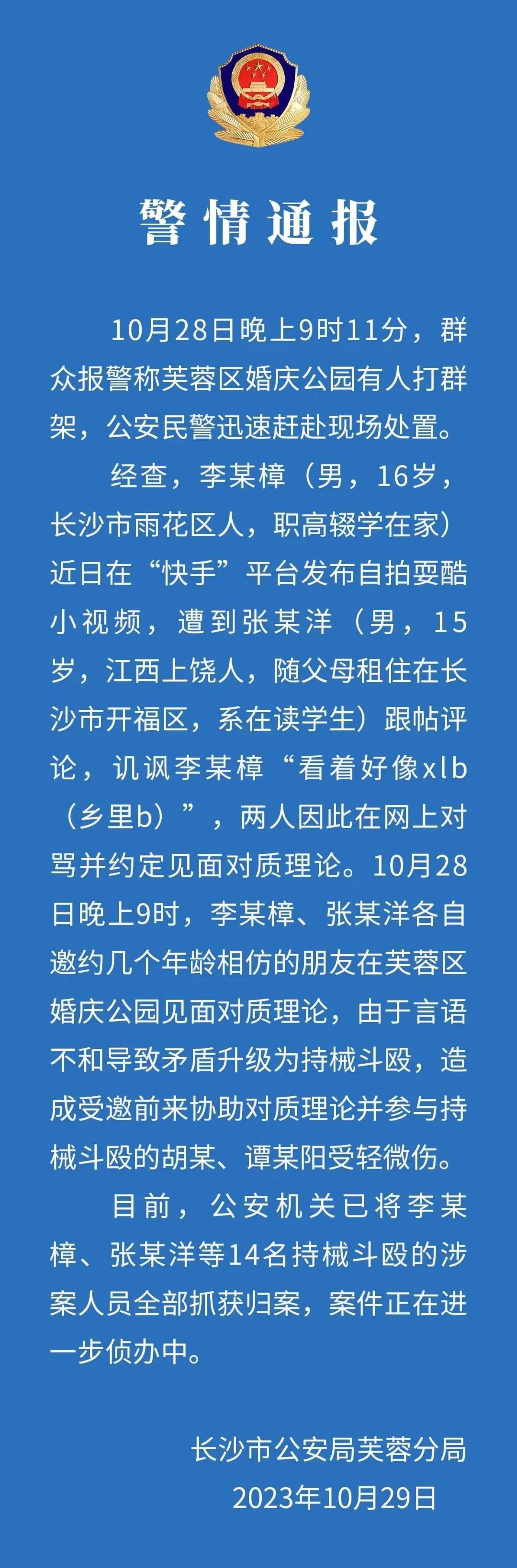 10月29日,湖南省长沙市公安局芙蓉分局发布警情通报: